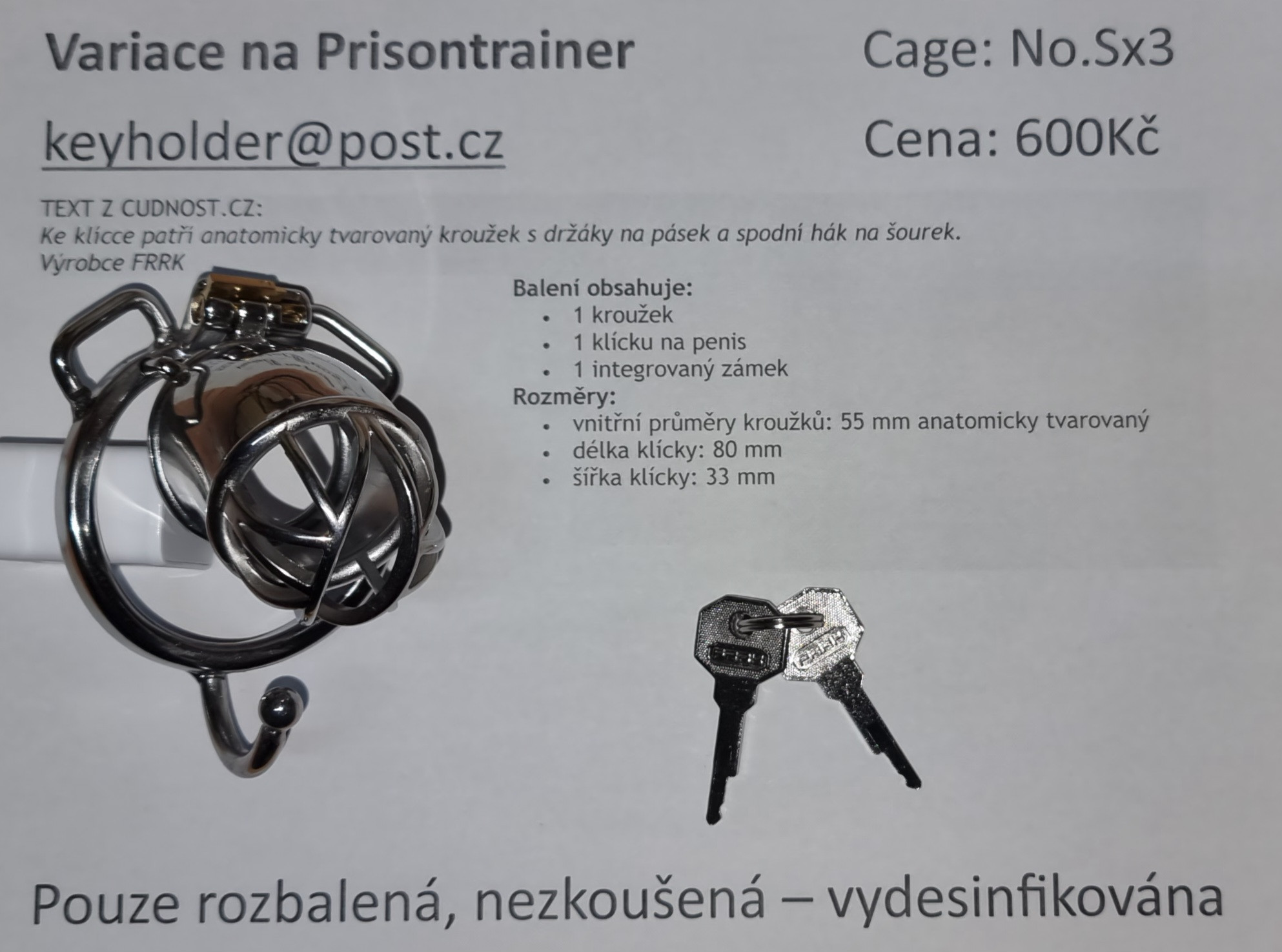 Vážení zájemci o inzerované věci, prosím kontaktujte prodejce vždycky způsobem uvedeným v inzerátu. U každého je buď odkaz na soukromé zprávy nebo emailová adresa. Děkuji.